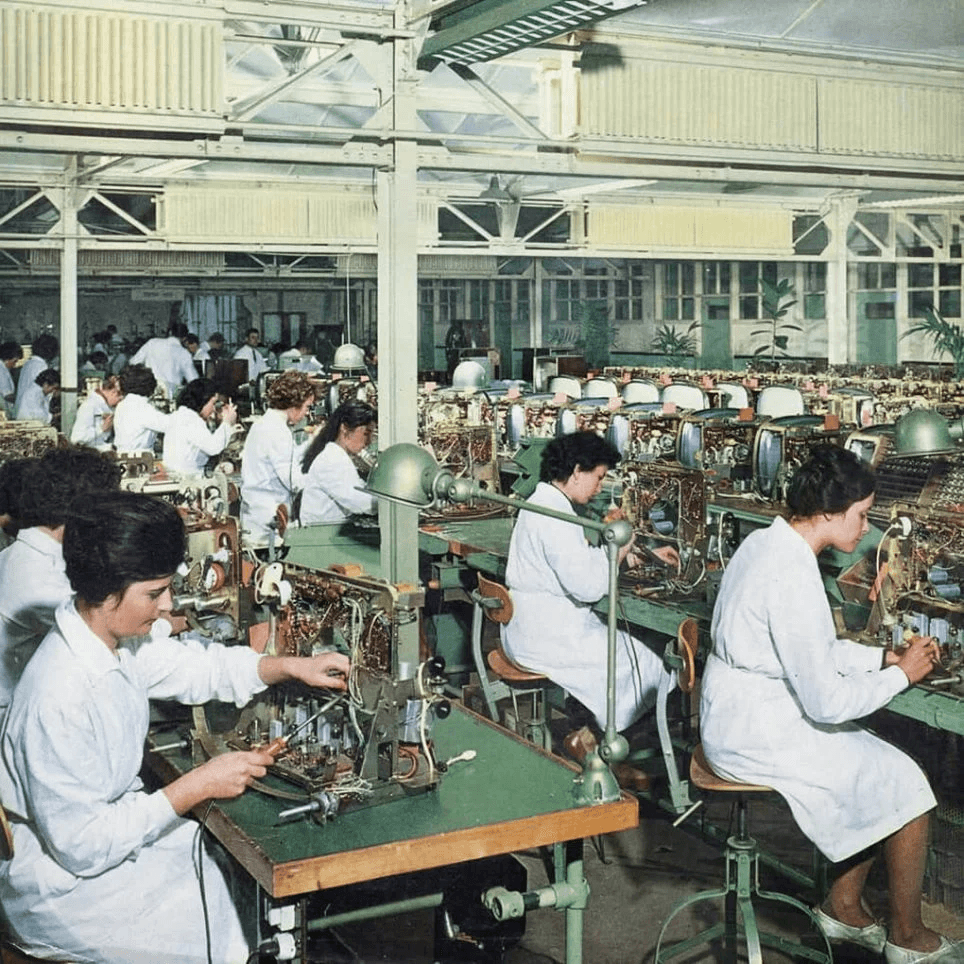 Dans les usines de Saint-Priest, le modèle définitif de la lampe Jildé voit le jour en 1953 © Getty Images