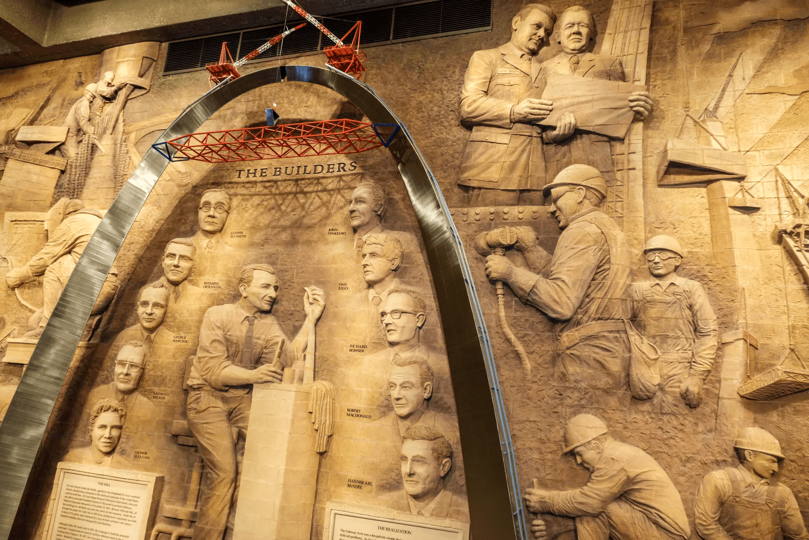 Au centre d’accueil des visiteurs de la Gateway Arch, une exposition met en avant le processus de construction du monument © Getty Images