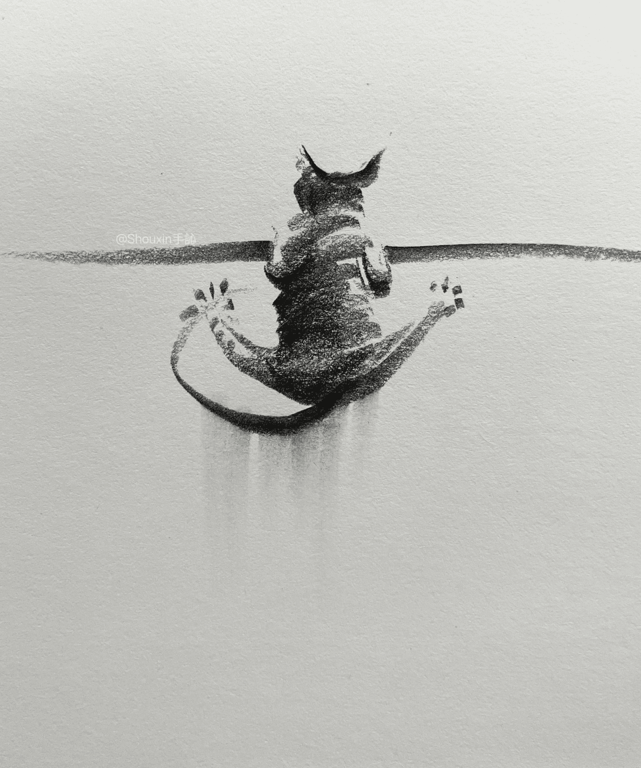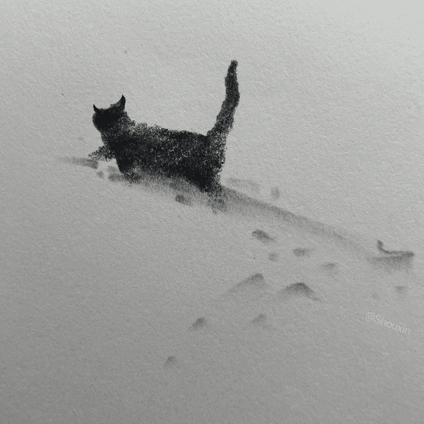 Shou Xin, originaire du Henan en Chine, s’est fait connaître par ses dessins minimalistes où la simplicité devient force. À première vue, ses esquisses ressemblent à de rapides esquisses jetées sur le papier. Mais ces lignes économiques — une courbe ici, une ombre légère là — suffisent à évoquer la souplesse, l’énergie, la grâce du chat. Les félins esquissés par Shou Xin semblent bondir hors de la page, leurs yeux brillent d’une expression, leurs corps racontent une histoire silencieuse faite de mouvements fluides et de moments volés.